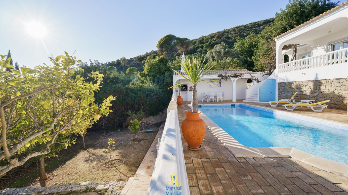 Front door opens into an entrance hallway, cloak room, large open plan lounge / dining room has patio doors opening onto a covered terrace with steps down to pool terrace and gardens.